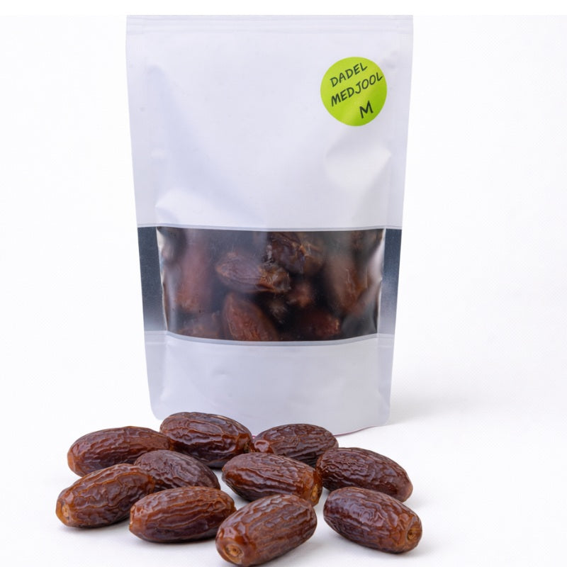 Dadel Medjoul M Premium is een hoogwaardige dadelsoort afkomstig uit Saudi-Arabië. Deze middelgrote Medjoul-dadel – ook bekend als Medjool, Majhoul of Majool – staat bekend om zijn zachte structuur, diepe karamelsmaak en natuurlijke zoetheid. Door de zorgvuldige selectie en hoge kwaliteit zijn deze premium dadels ideaal voor dagelijks gebruik en geschikt voor zowel gezonde eters als liefhebbers van luxe dadelsoorten.