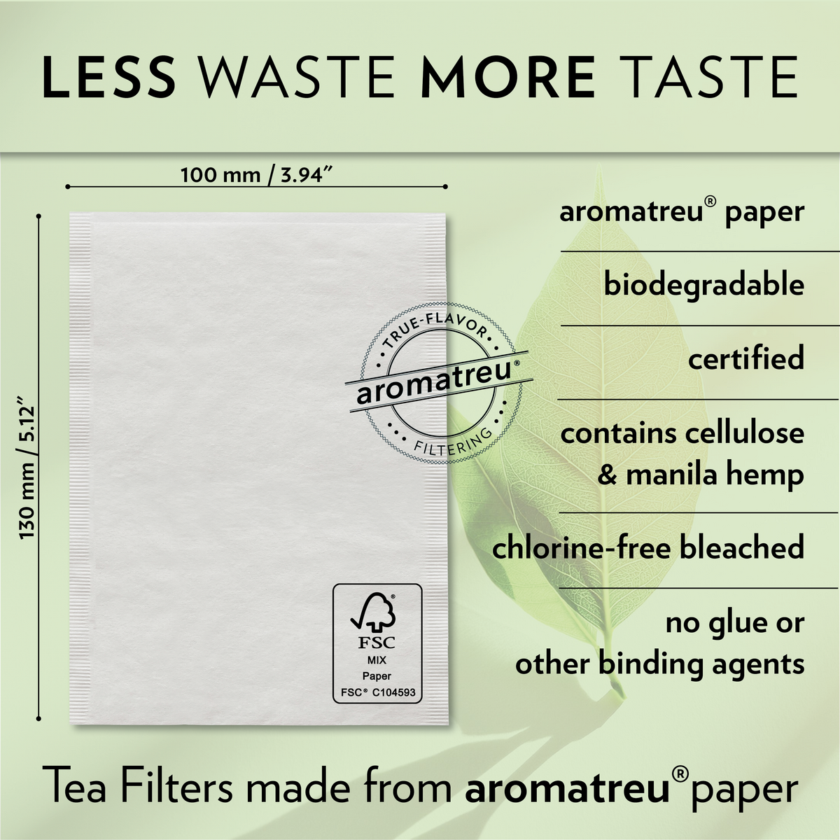finum TEABAR M, Theefilters, biologisch afbreekbaar, doos met 100 True Flavor-filters van FSC-gecertificeerd, biologisch afbreekbaar papier - bruikbaar met verschillende houders. Het filterpapier bestaat uit abacapulp, cellulose en afdichtingsvezels. Biologisch afbreekbaar, chloorvrij gebleekt, zonder lijm