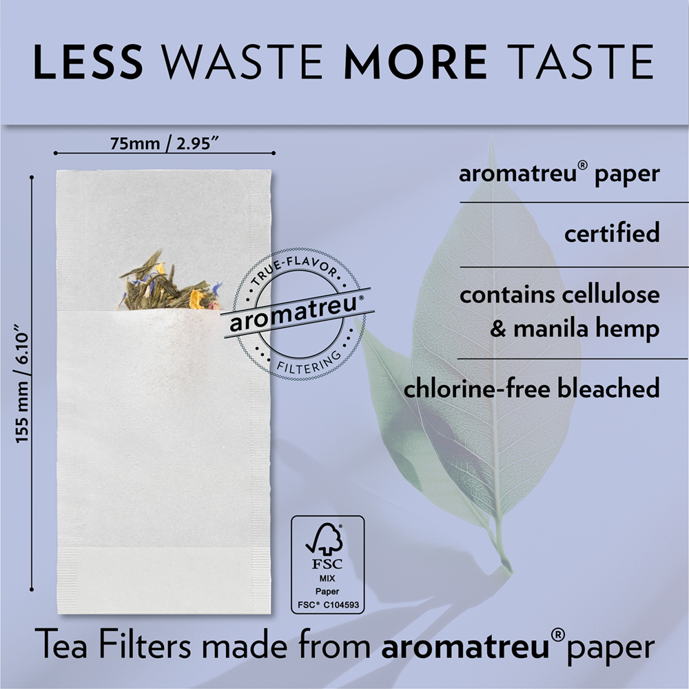 Finum THEEFILTERS S, Theefilters met gemakkelijk te vullen klep, biologisch afbreekbaar, doos van 100. Het filter kan worden afgesloten als een “theezakje” door de vulklep dicht te vouwen en te sluiten met een willekeurige filterhouder, b.v. doorprik het filter met de filterstaaf. De finum® Filter Stick rust op elk standaard kopje of kan in een theepot worden gedompeld en met het puntige uiteinde naar boven worden geplaatst om na het zetten uit de pot te worden getrokken. De finum® wegwerptheefilters zijn verkrijgbaar in verschillende maten – perfect voor elk kopje of grote pot. Een handige “vulklep” voorkomt rommel tijdens het vullen van de thee. Deze theefilters kunnen ook zonder filterhouder worden gebruikt, omdat de vulklep het verwijderen van het filter na het zetten vergemakkelijkt.